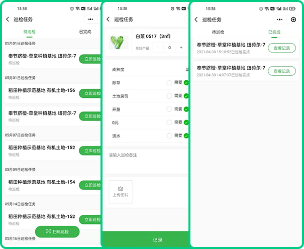 查看土地巡检记录、巡检对象、预估产量、成熟度以及对土地进行的操作